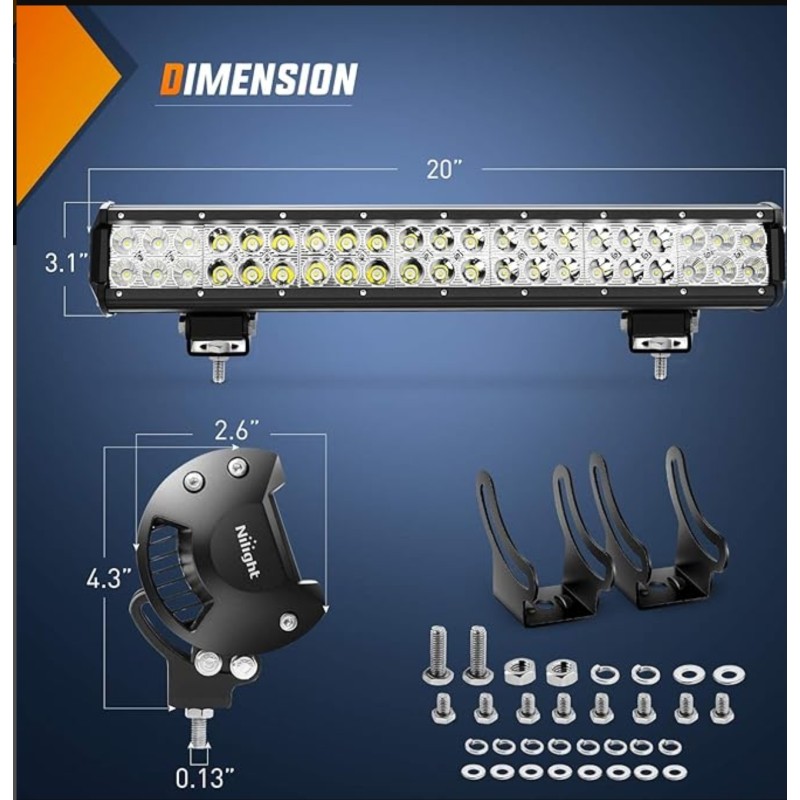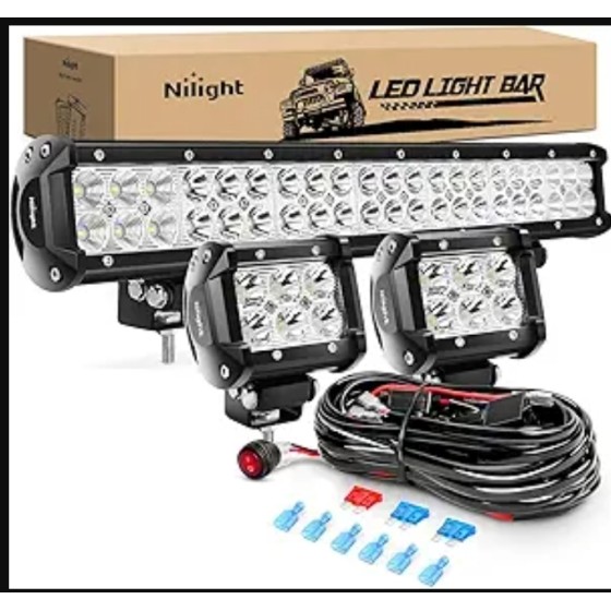 Nilight - ZH002 20Inch 126W Spot Flood Combo Off Road Led Light Bar 2PCS 18w 4Inch LED Pods With 16AWG Wiring Harness Kit-3 Lead For Tractor, 2 Years Warranty